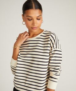 Universal Standard Women’s Tops Lauren Classic Sweatshirt – Ecru/black Stripe | Ecru & Black Stripe