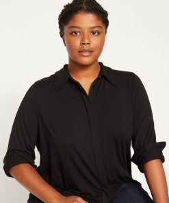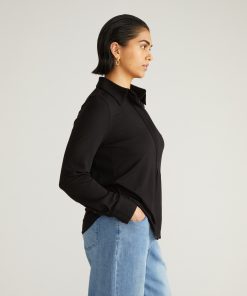 Universal Standard Women’s Workwear Elbe Popover Liquid Jersey Shirt Classic Fit – Black | Black