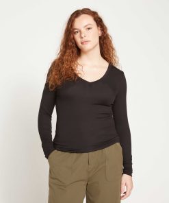 Universal Standard Women’s Tops Foundation Long Sleeve V-neck Tee – Black | Black