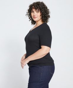 Universal Standard Women’s Tops Foundation Short Sleeve V-neck Tee – Black | Black