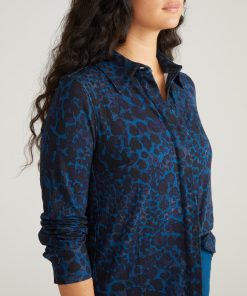 Universal Standard Women’s Workwear Elbe Liquid Jersey Shirt Classic Fit – Deep Teal Animal Print | Deep Teal Animal Print