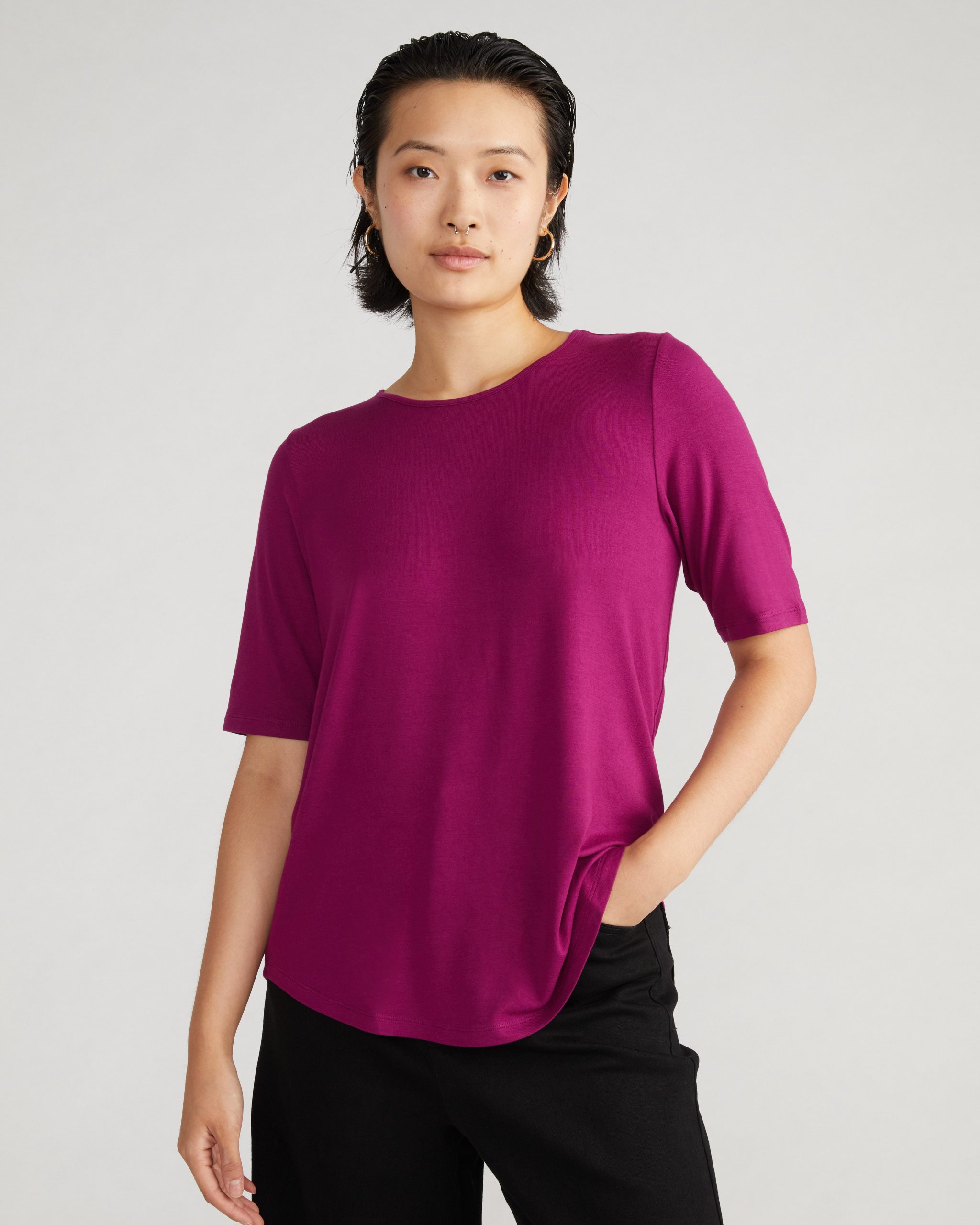 Universal Standard Women’s Workwear Lily Liquid Jersey Crew Neck Stovepipe Tee – Rothko Purple | Rothko Purple