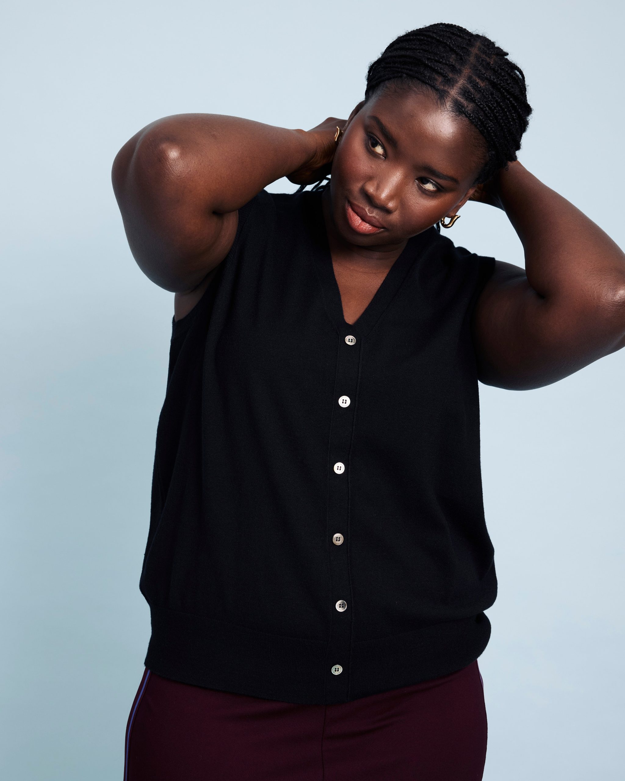 Universal Standard Women’s Workwear Savvy Fine Knit Cardigan Vest – Black | Black