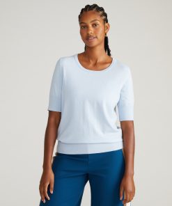 Universal Standard Women’s Workwear Savvy Fine Knit Sweater Top – Silver Blue | Silver Blue